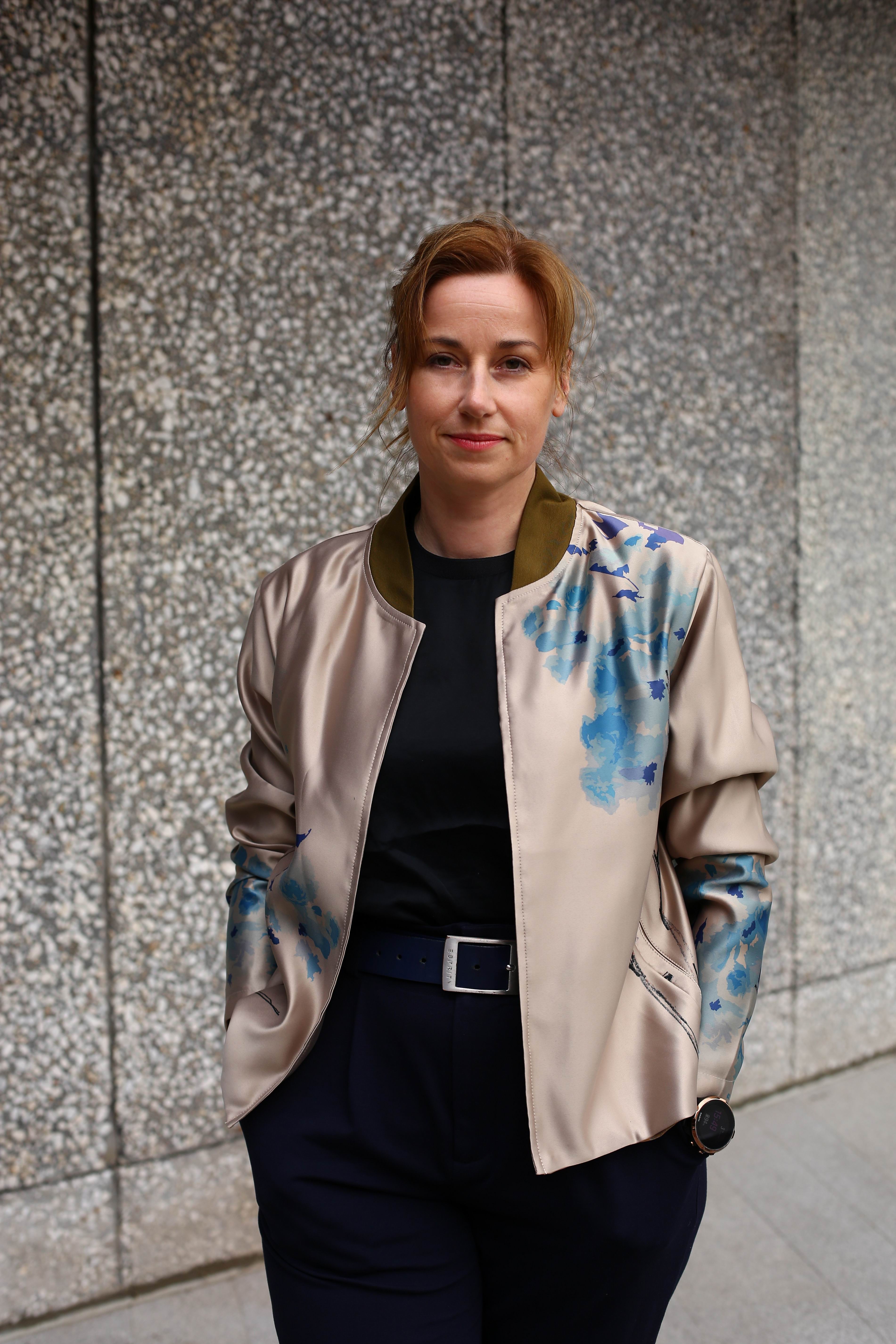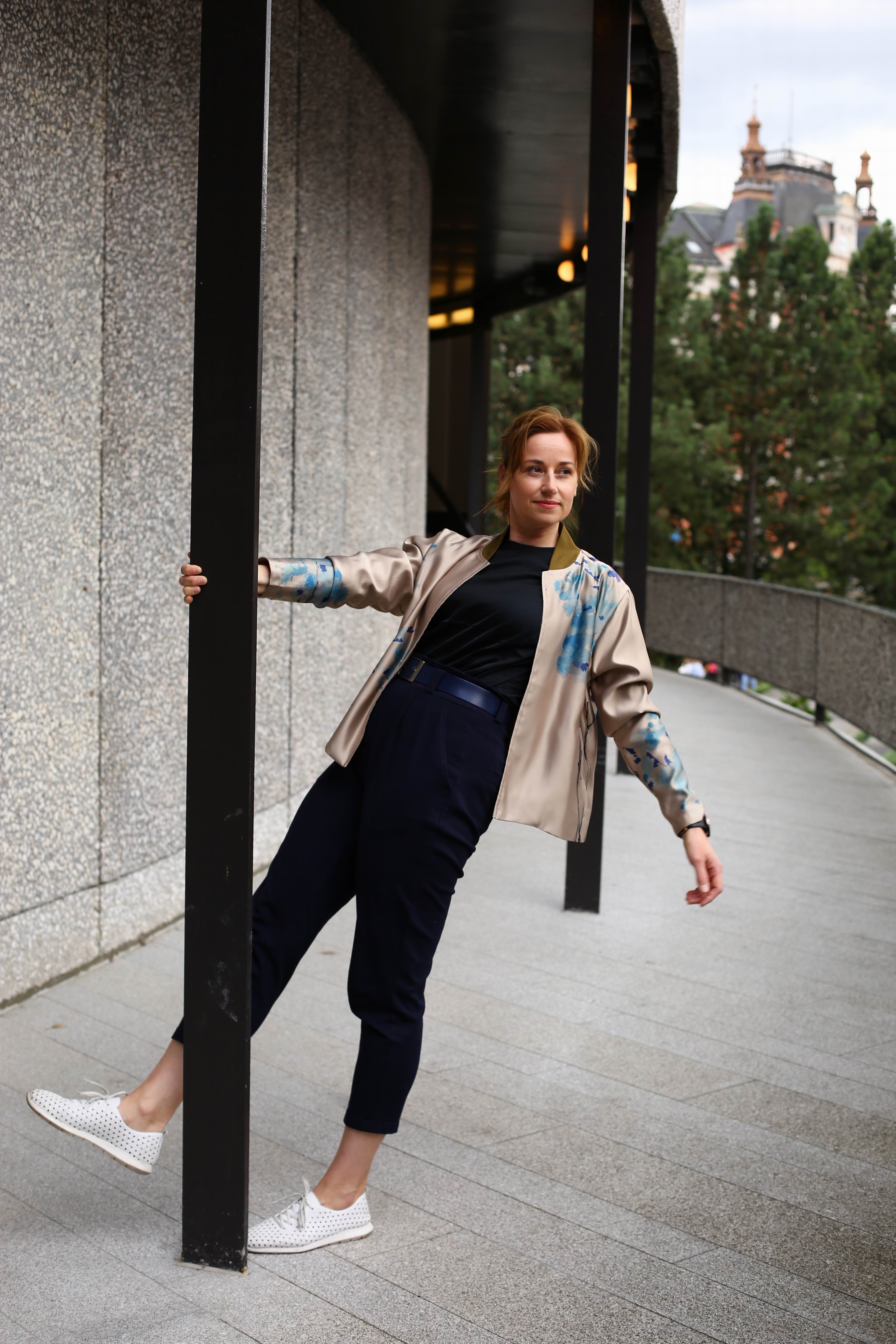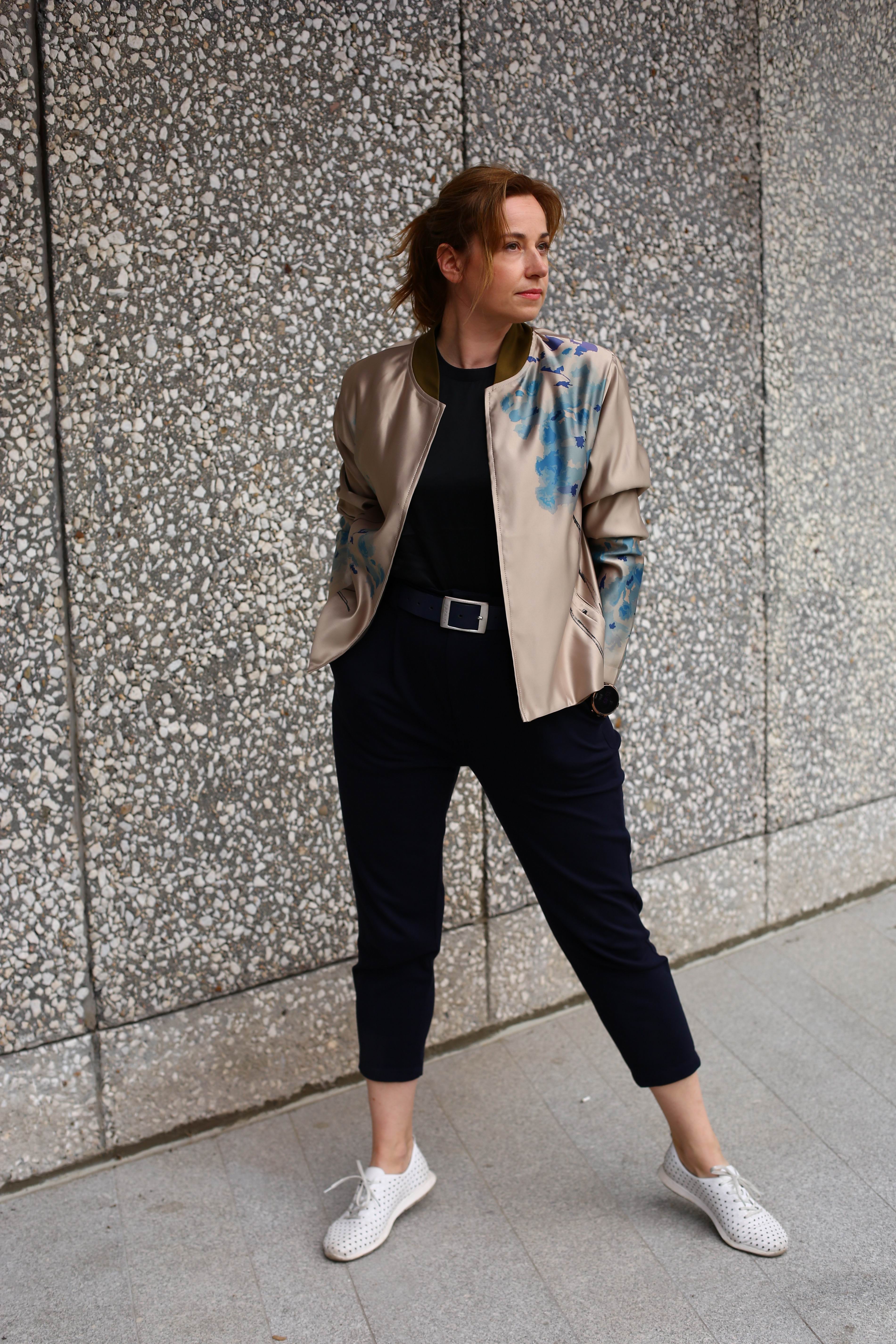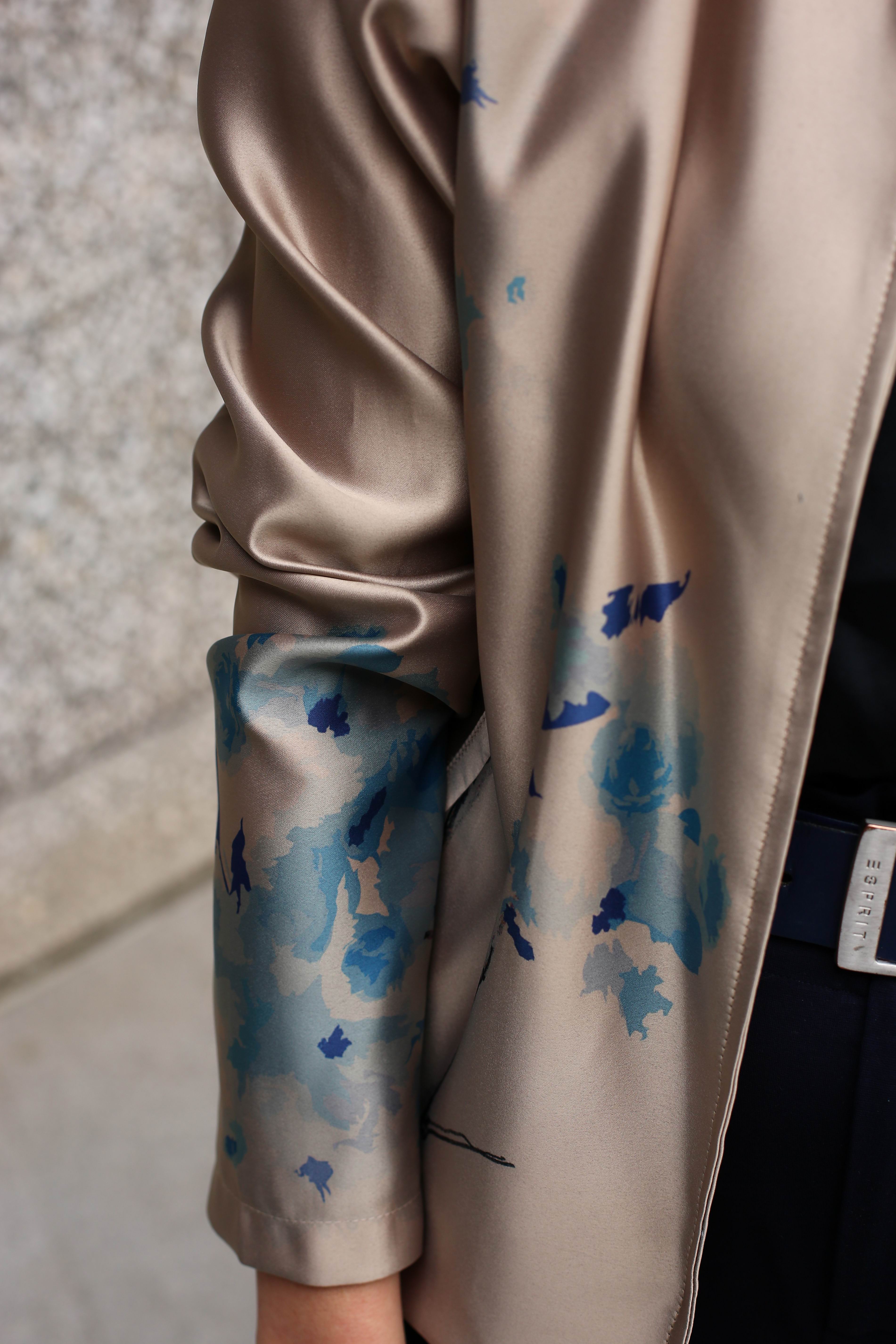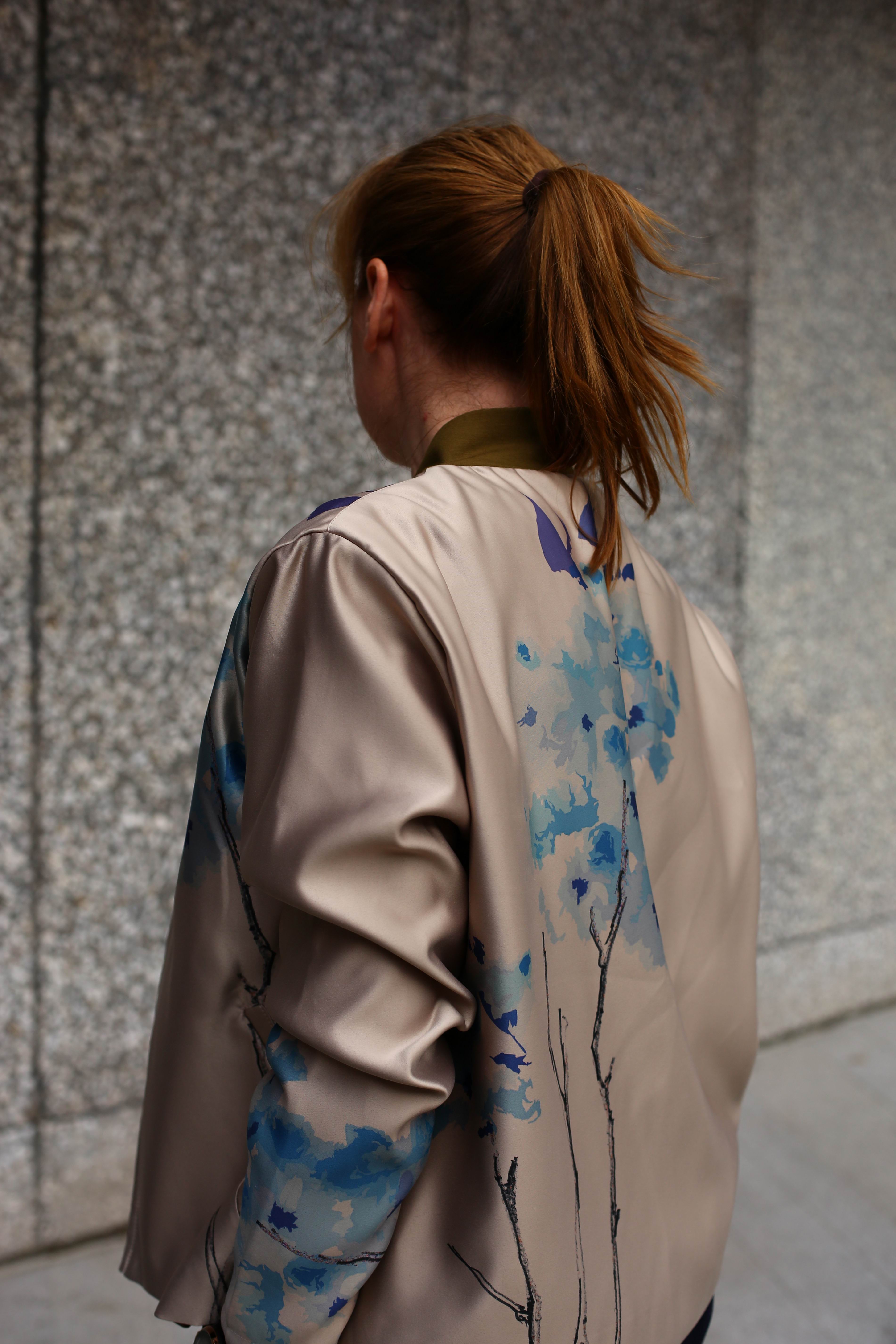 Letní nebo společenský saténový bomber s vlastním potiskem sakury.