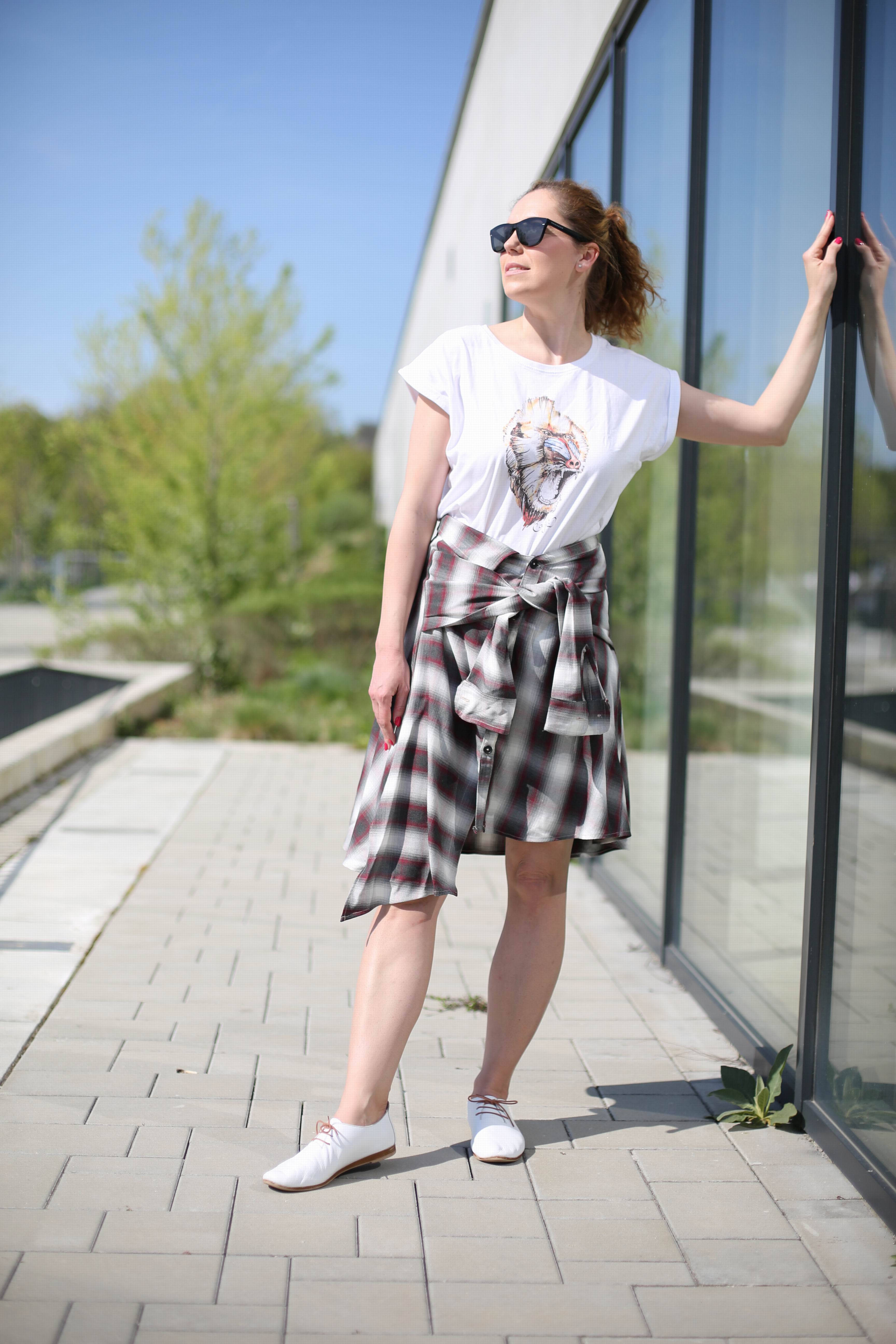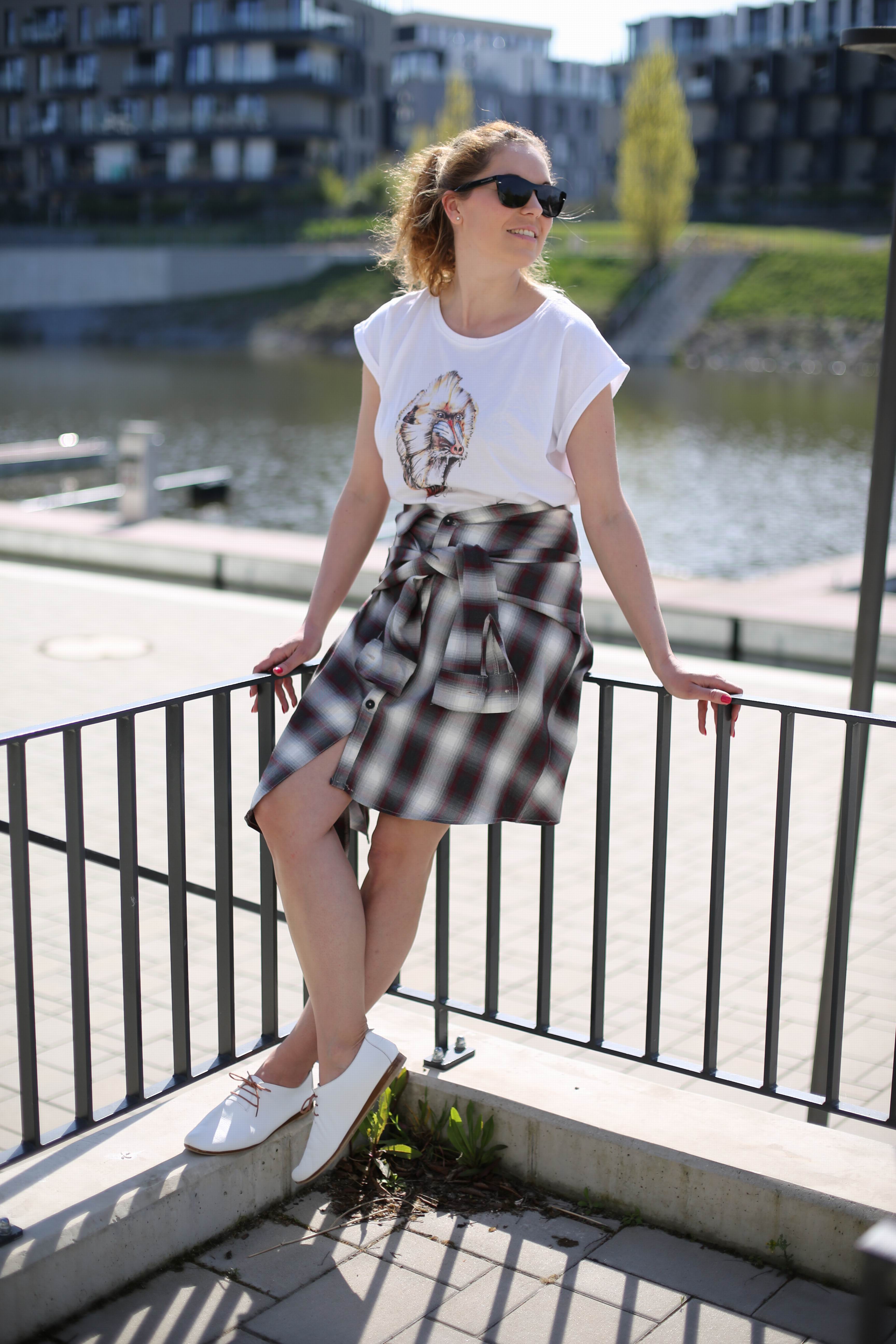 Jedná se o lehkou sukni vhodnou do společnosti i k volnočasovým městským aktivitám. Sukně je vyrobena z košilové látky látky. Svým střihem evokuje uvázanou košili okolo pasu.