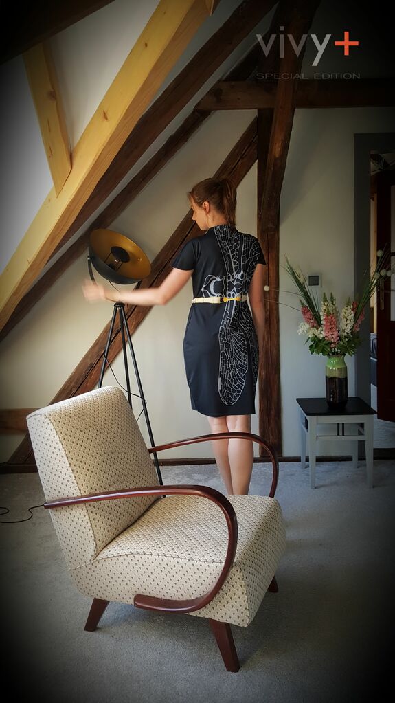 Jedná se o lehké šaty vhodné do společnosti i volnočasovým městským aktivitám ale i k tanečním aktivitám. Šaty jsou vyrobené z lehké pružné polyesterové látky s elastanem. Jedná se o autorský střih. Šaty jsou vyrobeny v dalších barevných variacích v omezené kolekci. Velikost prosím uveďte do poznámky.