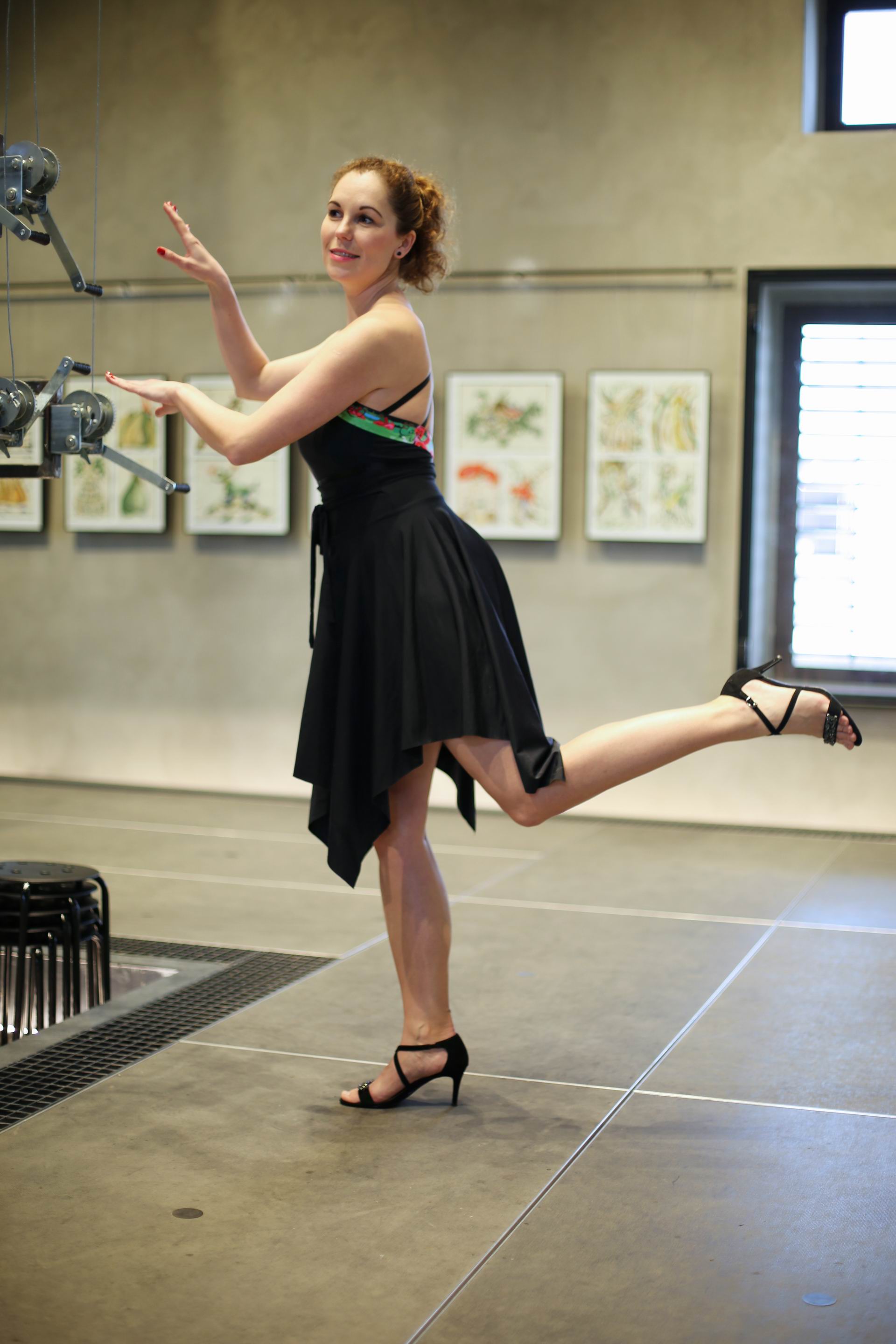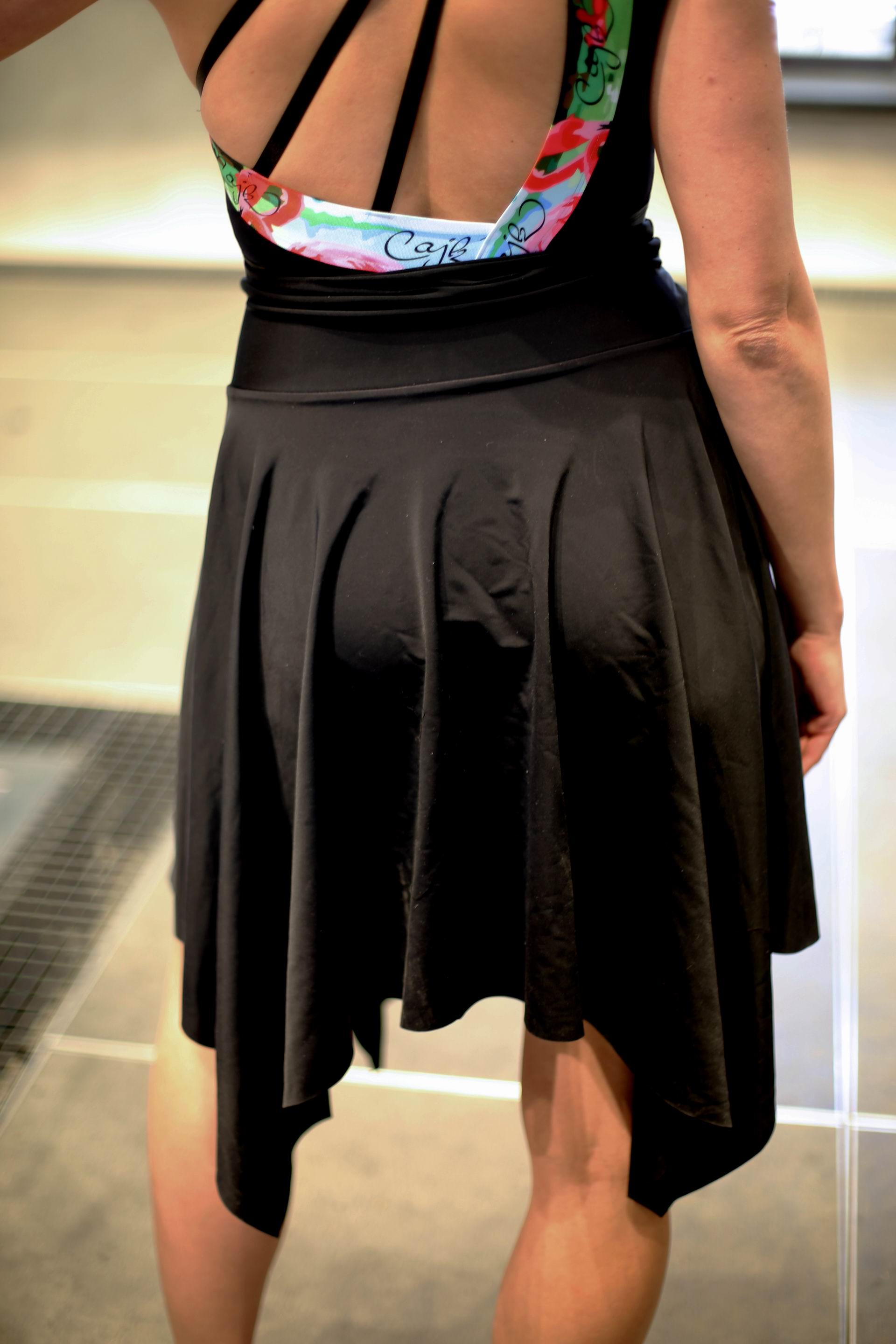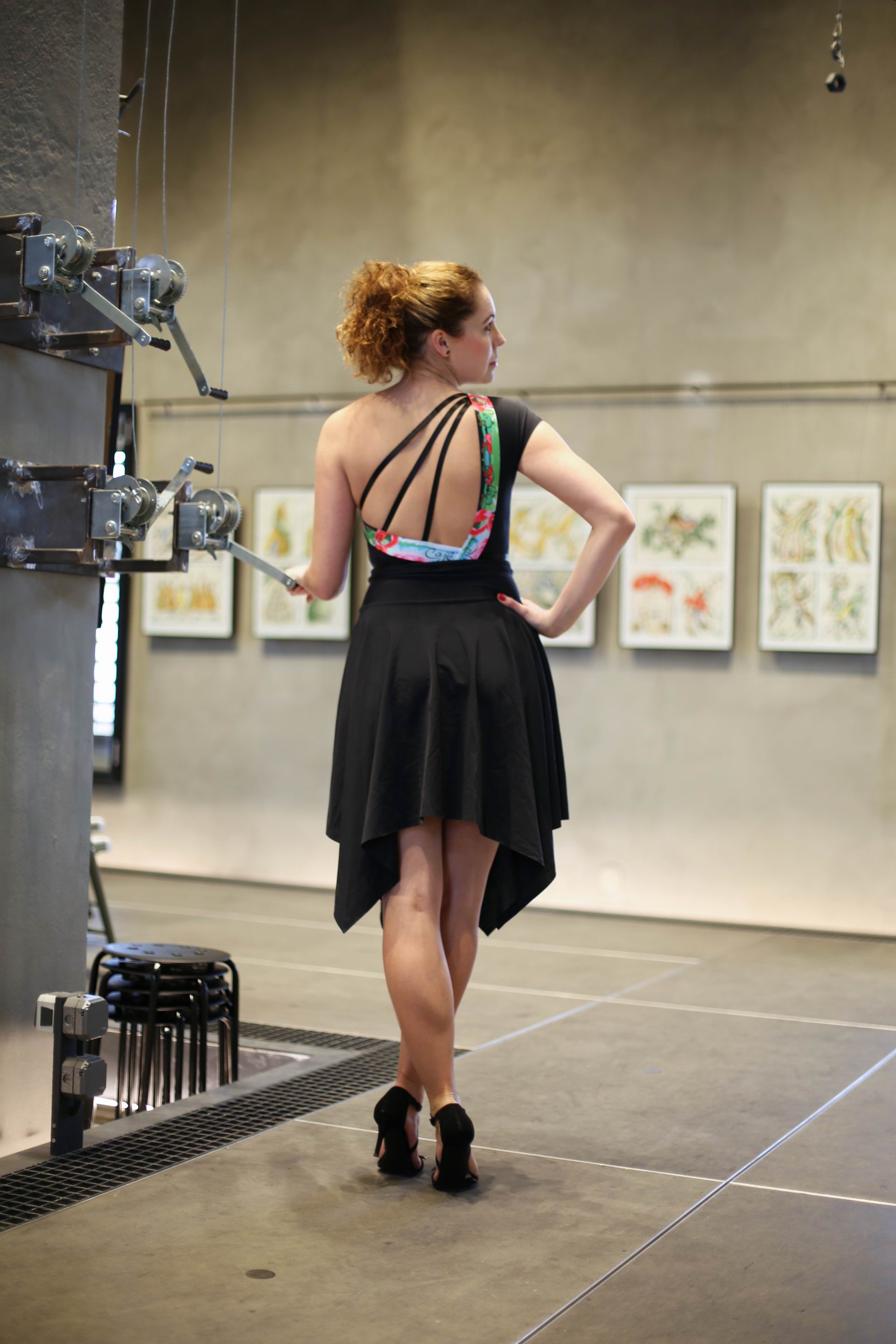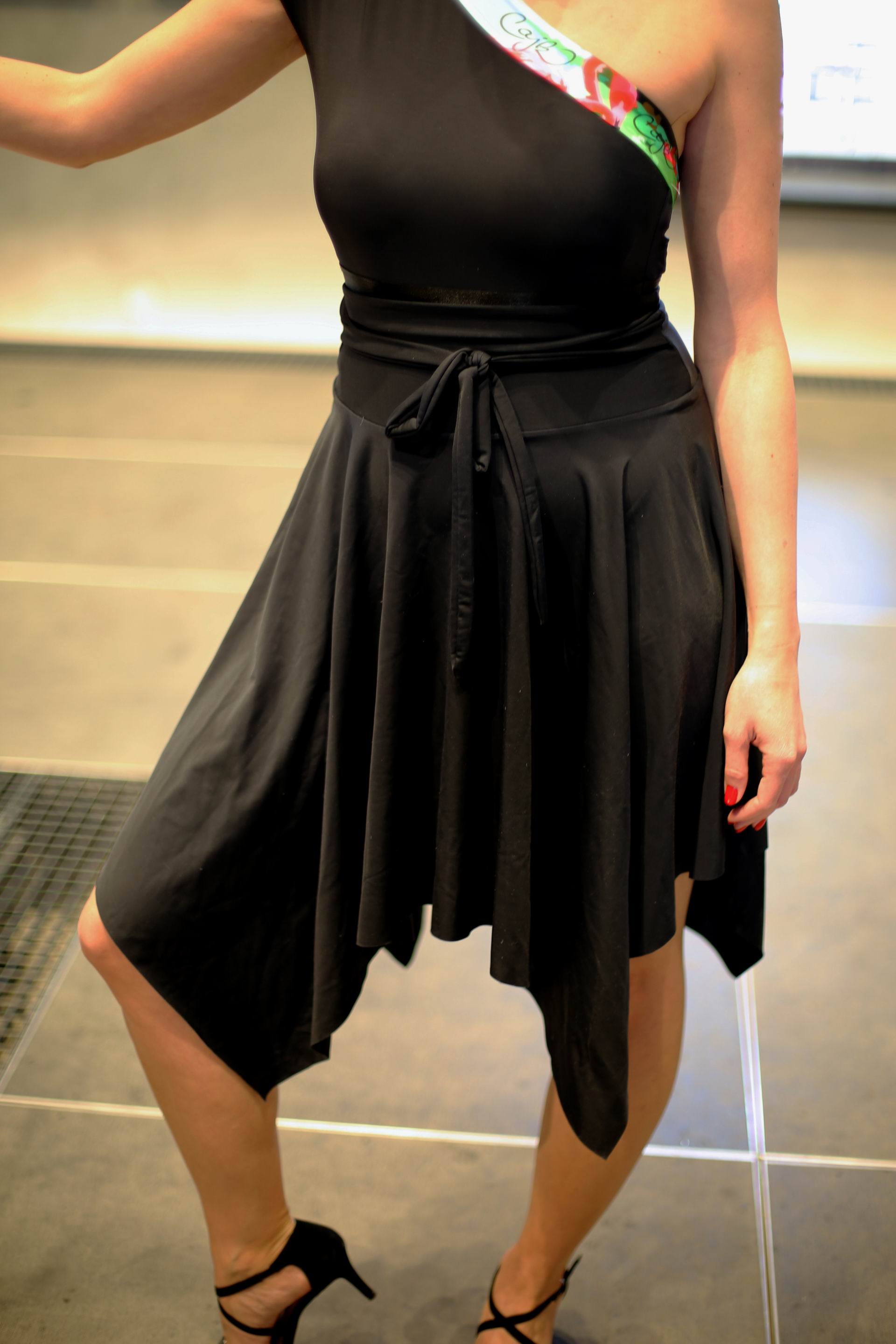 Jedná se o lehkou sukni vhodnou do společnosti i k volnočasovým městským aktivitám. Sukně jsou vyrobeny z lehké pružné polyesterové látky s elastanem. Jedná se o autorský střih s vysokým pasem.