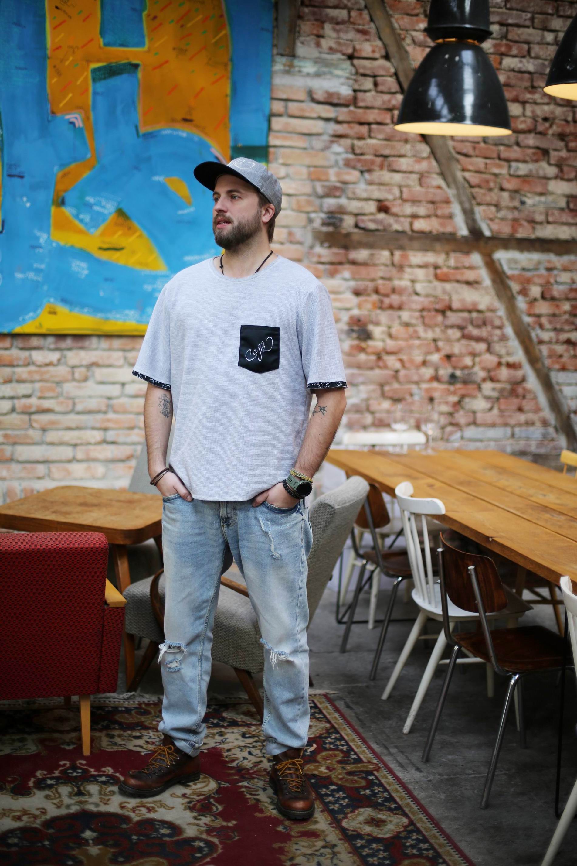 Bavlněné triko doplněné autorským tiskem , originálního střihu a šití. Tričko je z velmi příjemného jemného a přírodního materiálu. Doplňující potisk je černý.